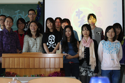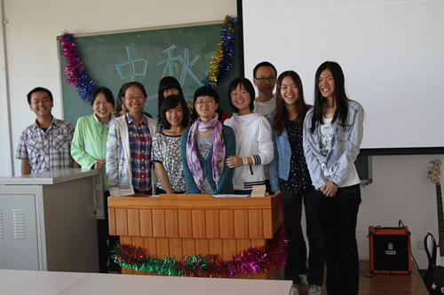 012年9月29日上午9时,外国语学院2012级中秋慰问会在J5-203举行。外国语学院分团委书记李丹老师,英语班胥国红老师、宫海荣老师、张继琴老师以及德语班贺克老师抽出休息时间来到沙河校区亲切慰问2012级新生,为离家在外的学生送去中秋的祝福。