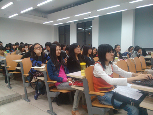 10月18日晚8点15分,外国语学院优良学风班答辩会在教5-202教室举行。本次答辩会由王心怡同学主持。会议的评委为11级辅导员马茜和12级辅导员智敏,学生代表为11级的张琦同学。外国语学院的全体同学出席了这次答辩会。