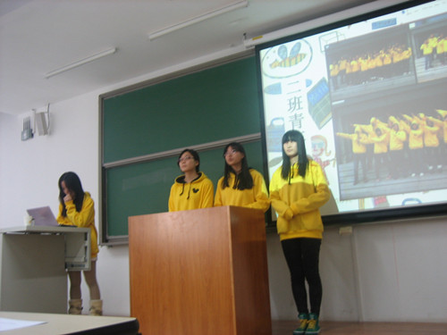 11月6号下午两点,外国语学院优班答辩评选正式开始,全体外国语学院11级新生参加了此次活动。本次初赛共四个参赛班级体参加,分别是111211班、111212班、111213班和111221班。本次活动由外国语学院2009级辅导员刁旭老师,2011级辅导员马茜和外国语学院学生会副主席宋岚婷、吴帅扬担任评委。