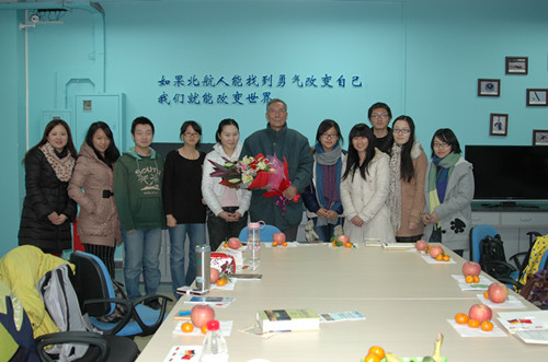 高远教授于1985年筹建外语系并任系主任,现为中国科学院研究生院等五所学校的兼职教授、学术委员和学术顾问,曾被评为全国优秀教师和北京市优秀教师。在英语专业交流会中,高教授首先和同学们分享了他的求学之路、人生历程、国外经历以及北航外国语学院的创建过程,随后针对同学们提出的关于专业问题进行了具体的解答。说到专业学习,高教授首先提出了“两个健全”,即健全身体和健全心理,只有具备这两者,学习才有了保障。在谈到学生们普遍抱怨的背课文的现象时,高教授鼓励同学们要克服心理障碍,不要急功近利,要下持久的功夫,背诵方能达到真正的效果。在交流过程中,高教授还为同学们朗诵了莎士比亚经典著作的节选,林肯在葛底斯堡的演讲,以及雪莱的《西风颂》,同学们都深受鼓舞和感动。高教授说,背诵并不只是简单的记忆和单调的重复,背诵能够提高自己的文学修养,对自己的语言和思想,都有很大的帮助甚至是影响。高教授还强调要“趁年轻多学习多积累”。